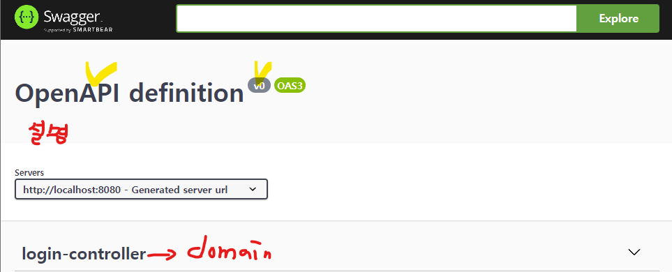 다음 코드를 통해 버전, 제목, 설명 및 OAS JSON 파일 링크까지 해결했습니다.