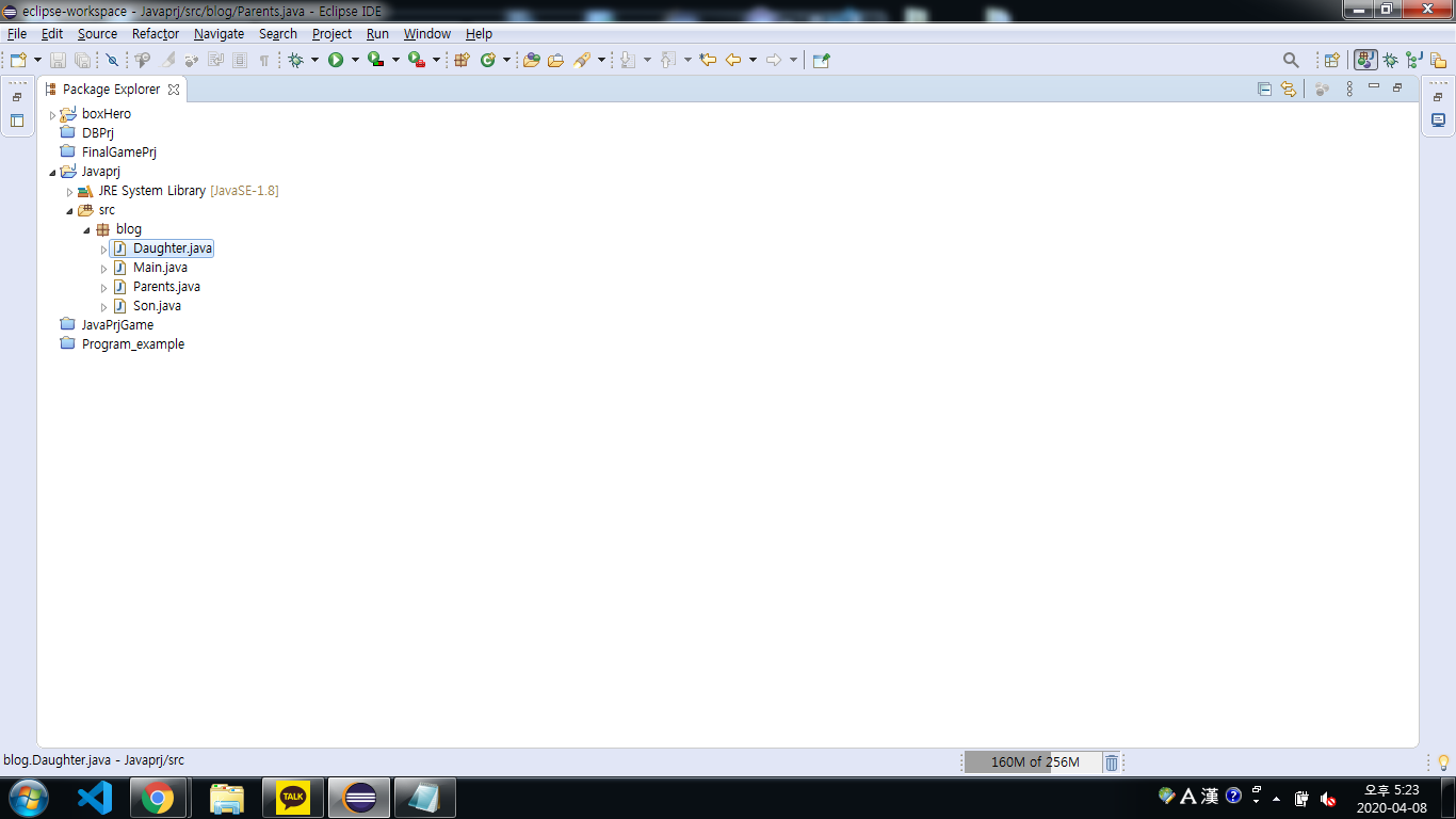상속을 받기위해 우리는 아들과 딸이라는 이름에 클래스를 만들어서 각각 상속을 extends Parents라는 코드로 작성을 해줍니다.