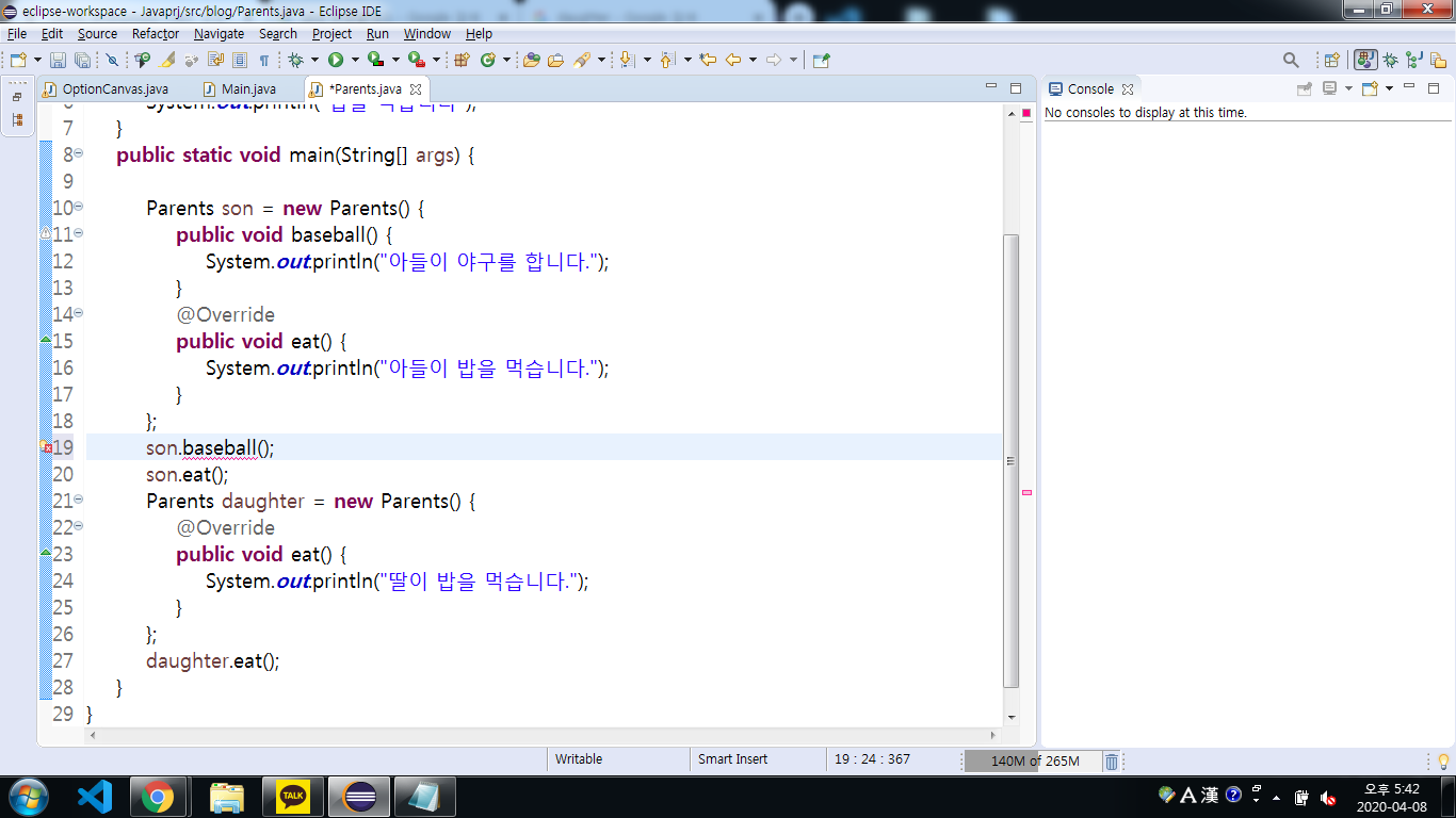 우리는 son이라는 익명 클래스를 생성했습니다. 그럼 아들과 딸이 밥을 먹어야겠죠?