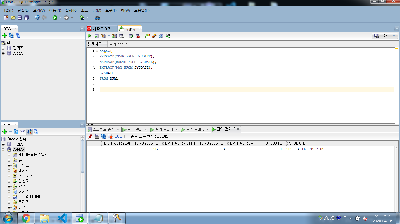 오라클에서는 쉽게 날짜를 관리할 수 있도록 여러 가지 함수를 제공합니다.
