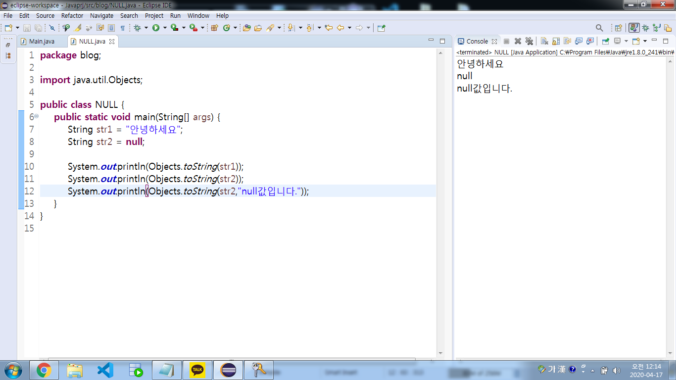 만약 입력값이 null일 경우에도 디폴트 값을 주고 리턴하도록 하려면 Objects.toString()을 사용하면 됩니다.