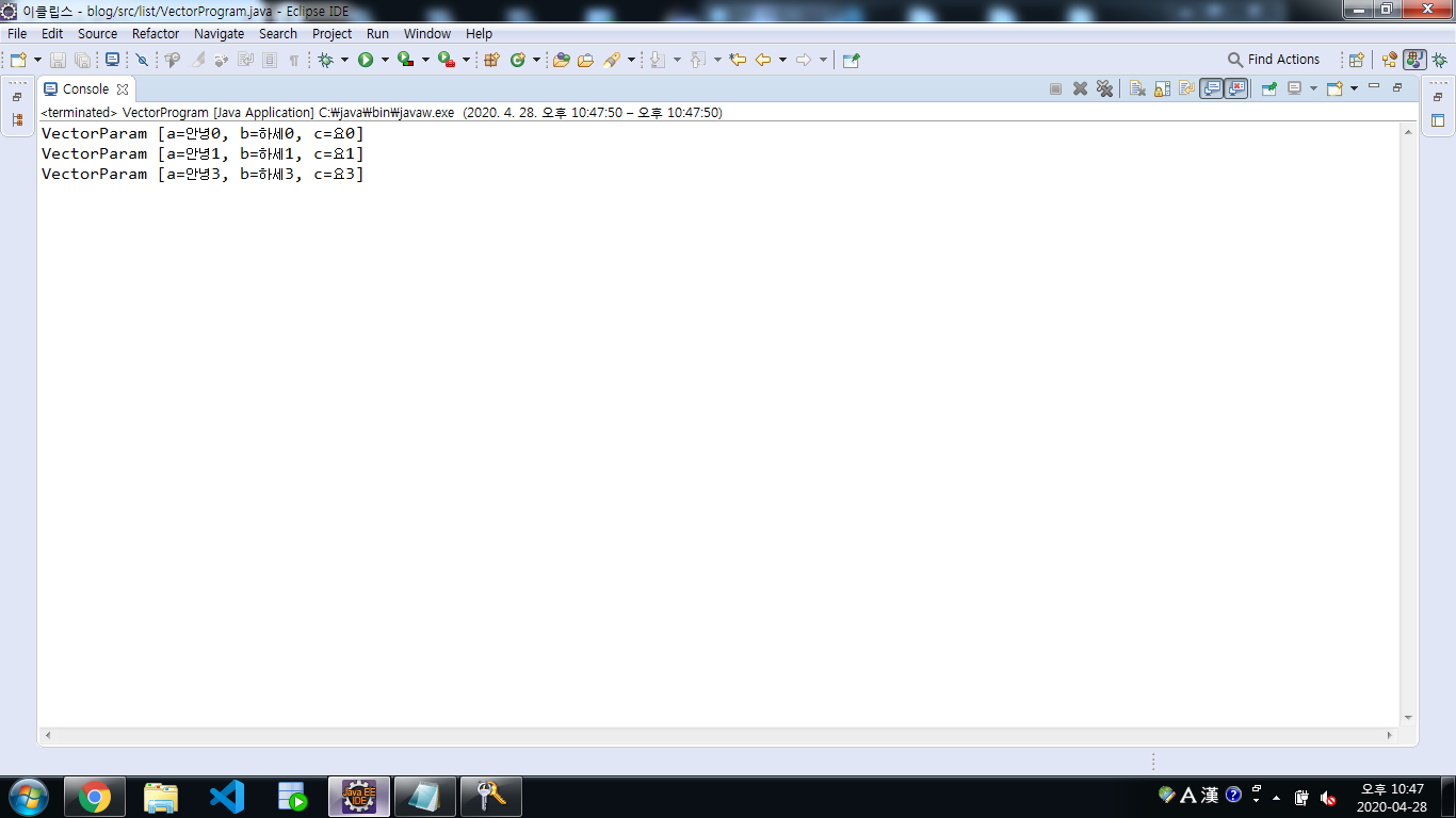 list.add(new VectorParam("안녕0","하세0" , "요0"));