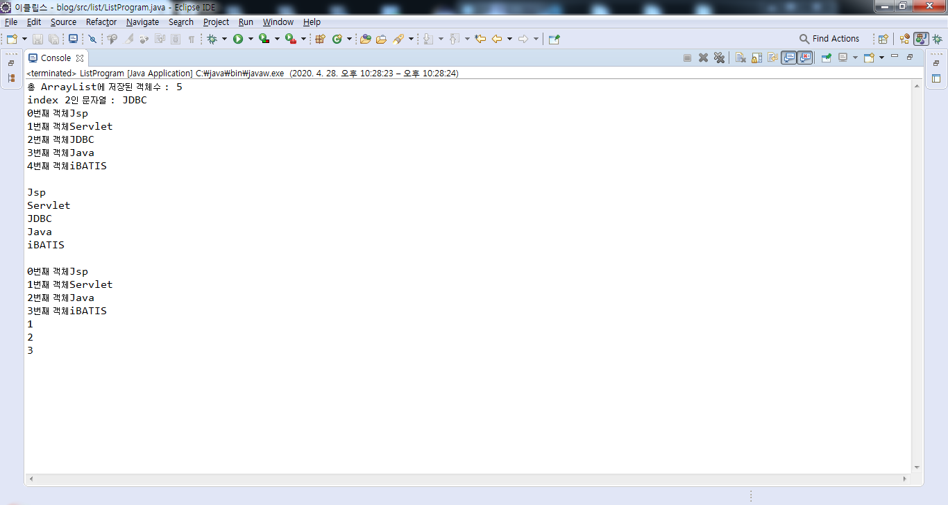 System.out.println("총 ArrayList에 저장된 객체수 : " + size);