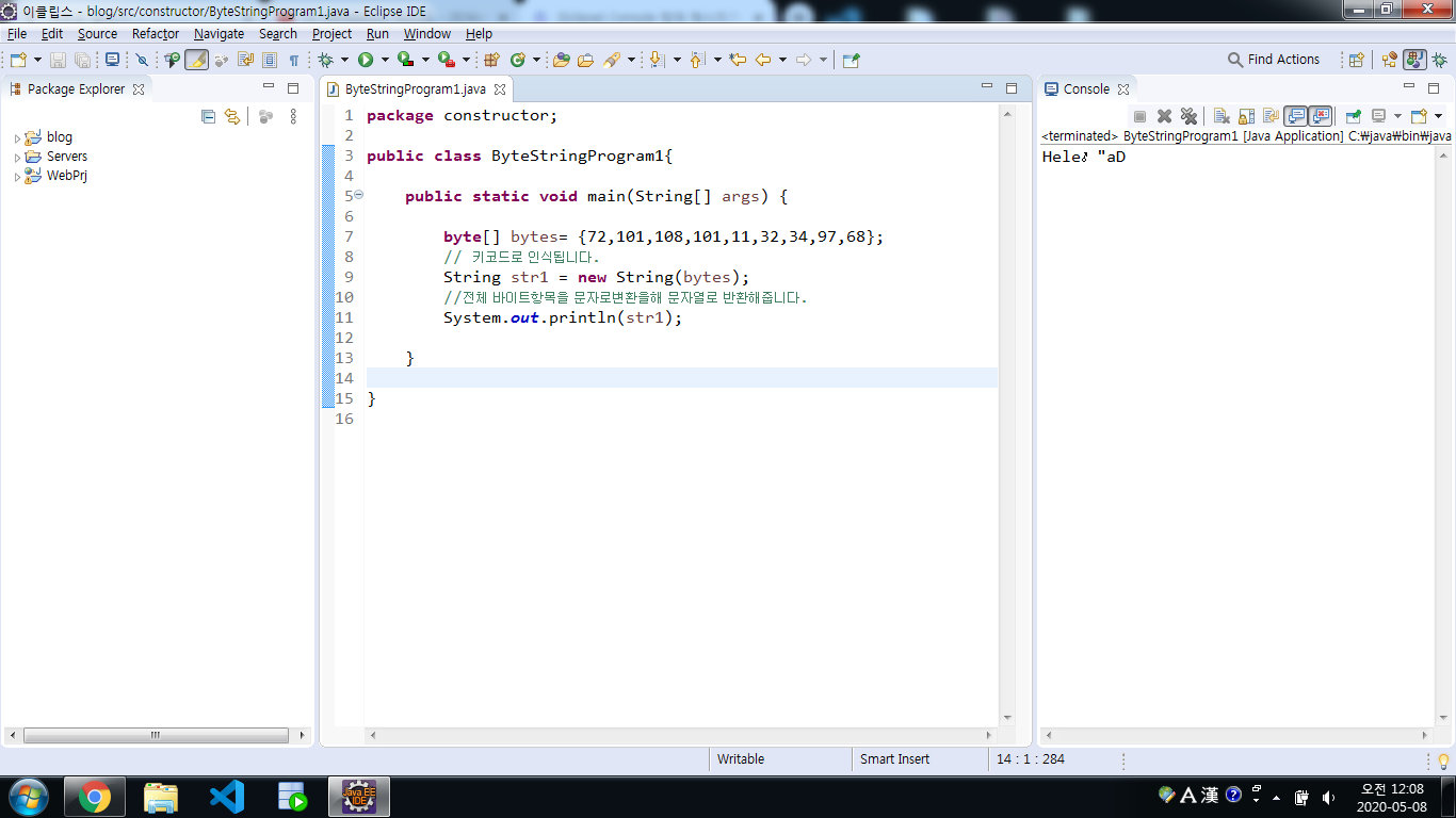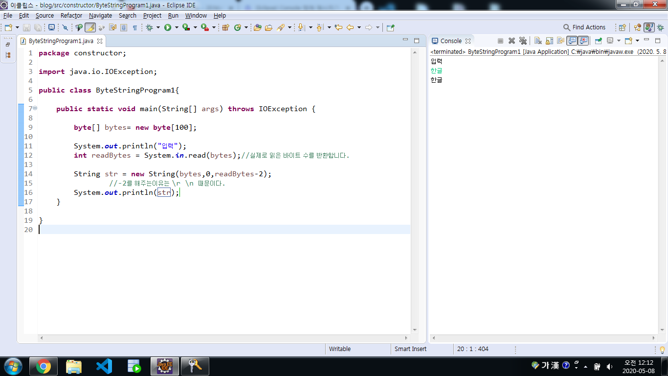 파일의 내용을 읽거나, 네트워크를 통해 받은 데이터는 보통 byte [] 배열로 받아 문자열로 변환합니다.