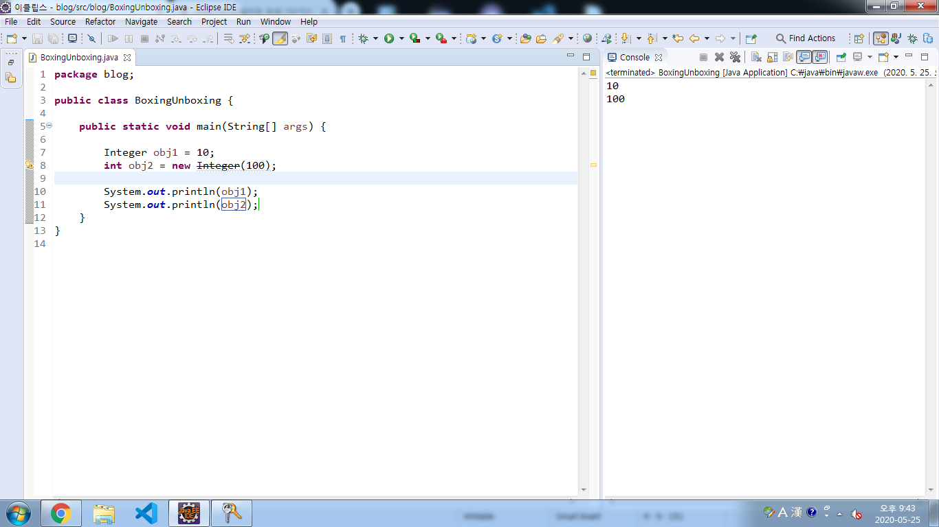 Boxing 기본 타입의 값을 포장 객체로 만드는 과정