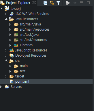 기본적으로 생성되는 폴더를 포함한 Maven 프로젝트의 주요 폴더는 다음과 같다.