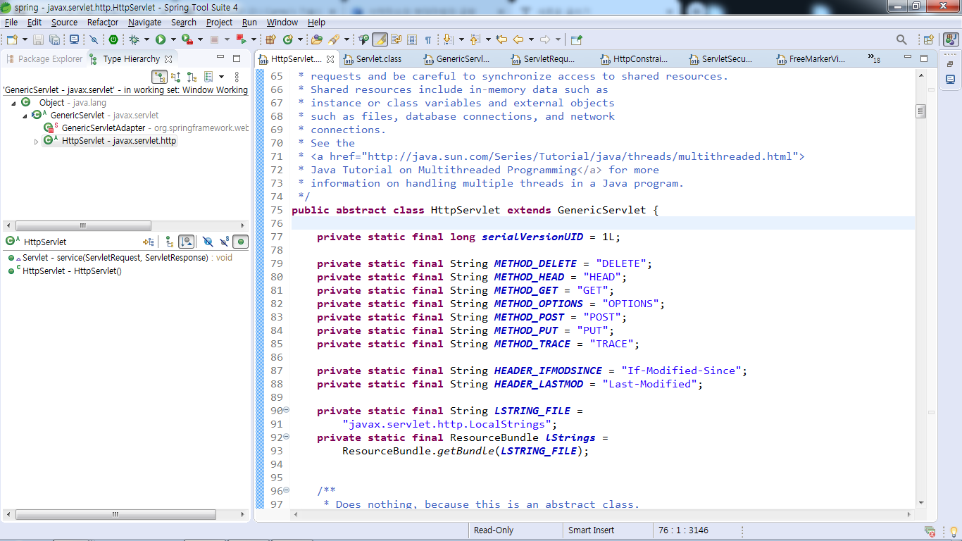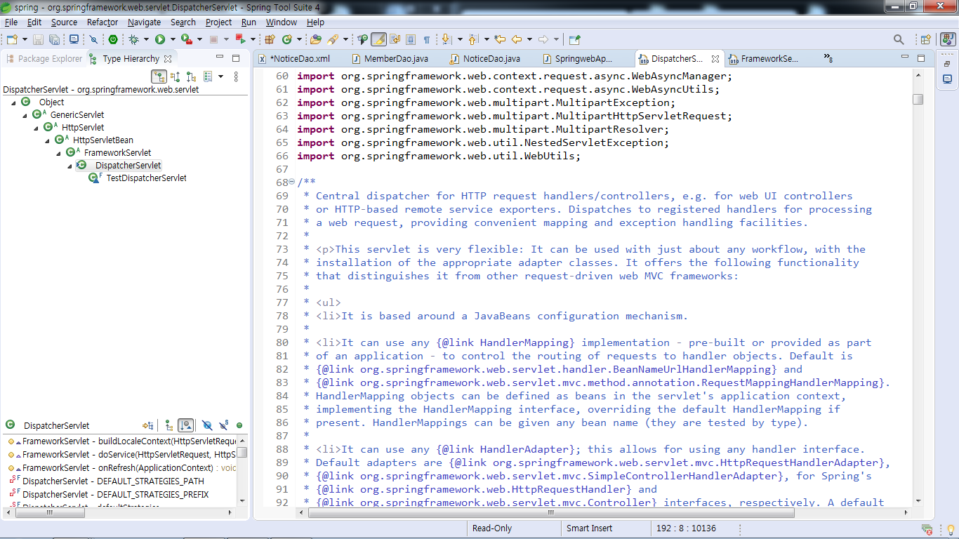 DispathcherServlet의 Hierarchy를 보면 상위 클래스를 볼 수 있다