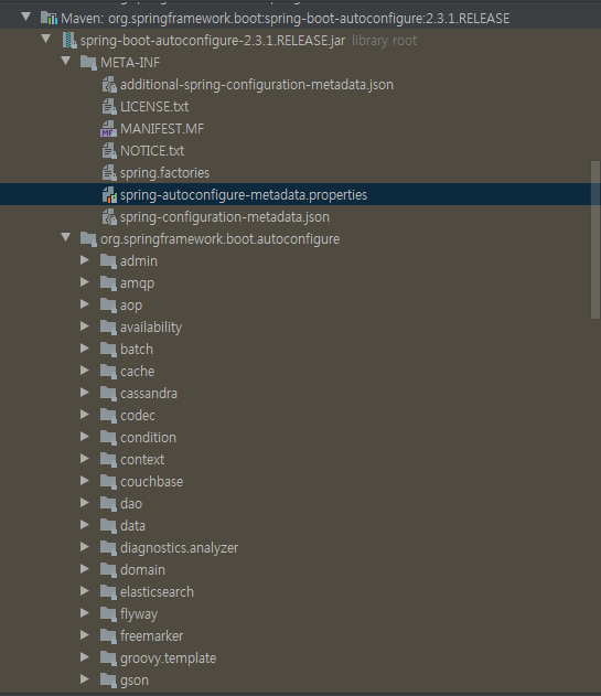 @EnableAutoConfiguration이 등록하는 빈은 autoconfigure.jar파일에 포함되어있습니다.