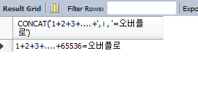 SELECT CONCAT('1+2+3+....+', i , '=오버플로');