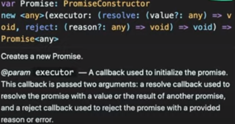 생성자를 보시면 executor라는 콜백 함수를 전달해주어야하는데요 이 콜백함수에는 또 다른 두가지의 콜백함수를 받습니다.
