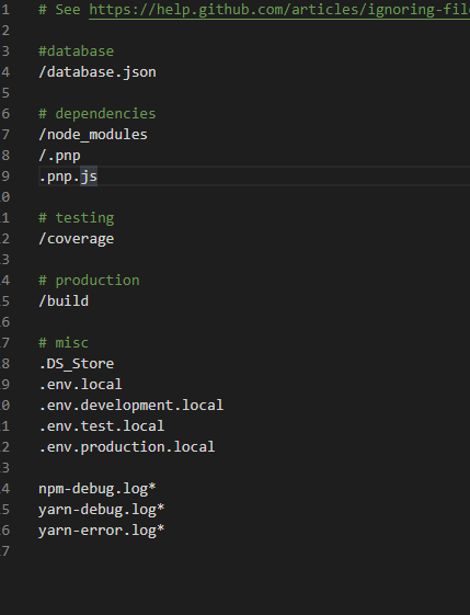 이제 database의 설정 정보를 저장할 database.json 파일을 생성한 뒤 gitignore의 추가해줍니다.