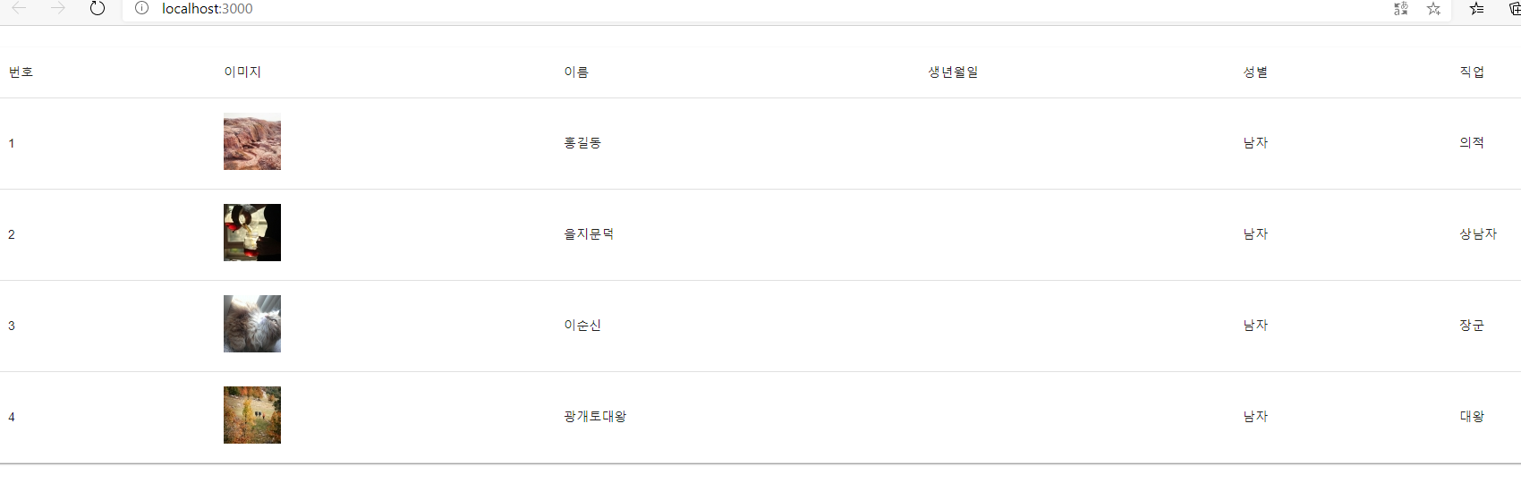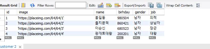 다음과 같이 데이터베이스에 고객 테이블에 정보를 넣습니다.