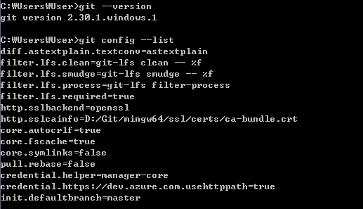 설정확인은 git config --list명령을 실행하면 된다.
