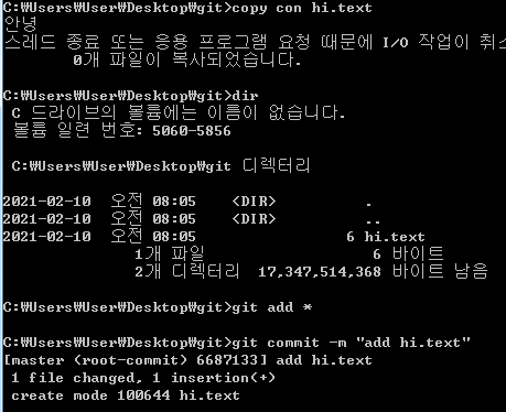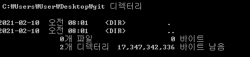 바탕화면에 git라는 폴더를 만들고 cmd창을 이동시켰다.