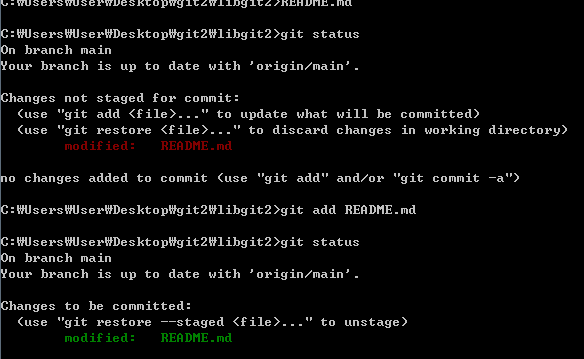 committed에 추가될 파일이라고 알려준다. git add 명령은 파일 또는 디렉터리 경로를 인자로 받는데 디렉터리 경우 하위 파일까지 재귀적으로 추가한다.