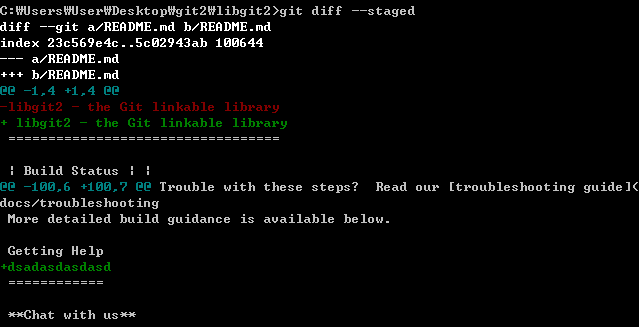 만약에 커밋하려고 Staging Area에 넣은 파일 부분의 변경 부분을 보고 싶다면 --staged옵션을 사용한다. 커밋된 것과 Staging Area에 있는 것을 비교한다.