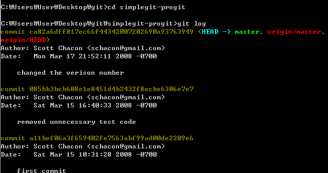 git 공식홈페이지에서 예제를 clone 해서 기록을 조회해 본다.