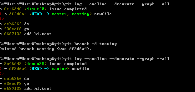 이제 testing 브랜치는 필요가 없다. -d옵션을 주고 삭제한다.