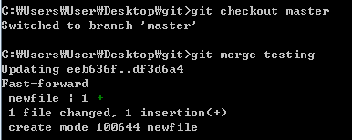 즉 master브랜치가 testing 브랜치가 가리키는 커밋으로 이동했다.