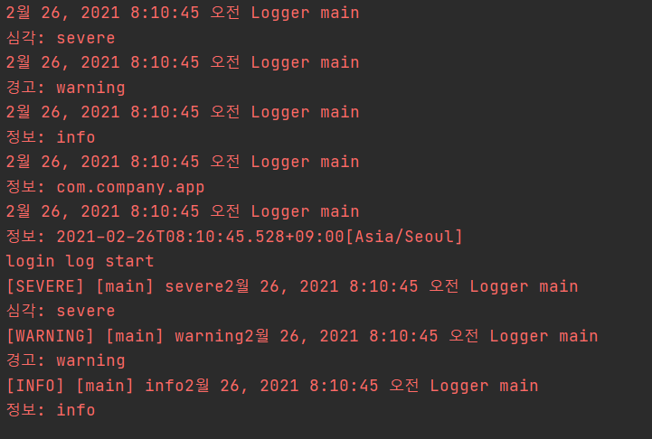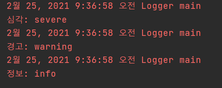 - ConsoleHandler는 시스템 콘솔에 출력합니다.