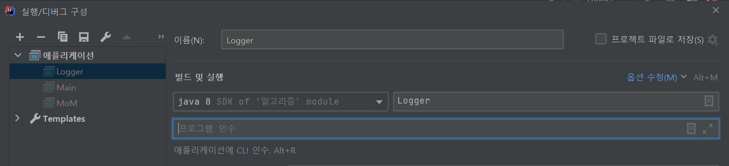 만약 설정 파일을 따로 지정하기 위해서는 자바 실행 옵션에 다음 내용을 추가해야 한다.