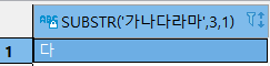 SELECT SUBSTR('가나다라마',3,1) FROM DUAL;