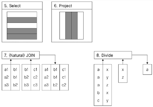 관계형 데이터베이스를 구현하기 위해 새롭게 만들어진 연산자이다.