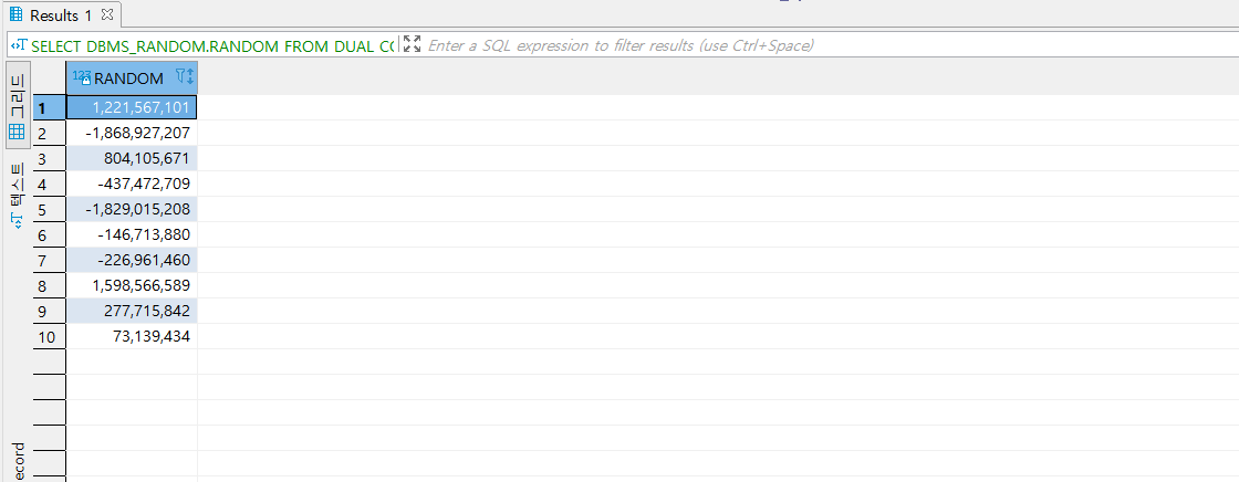 - SELECT DBMS_RANDOM.RANDOM FROM DUAL; 을 실행해보자.