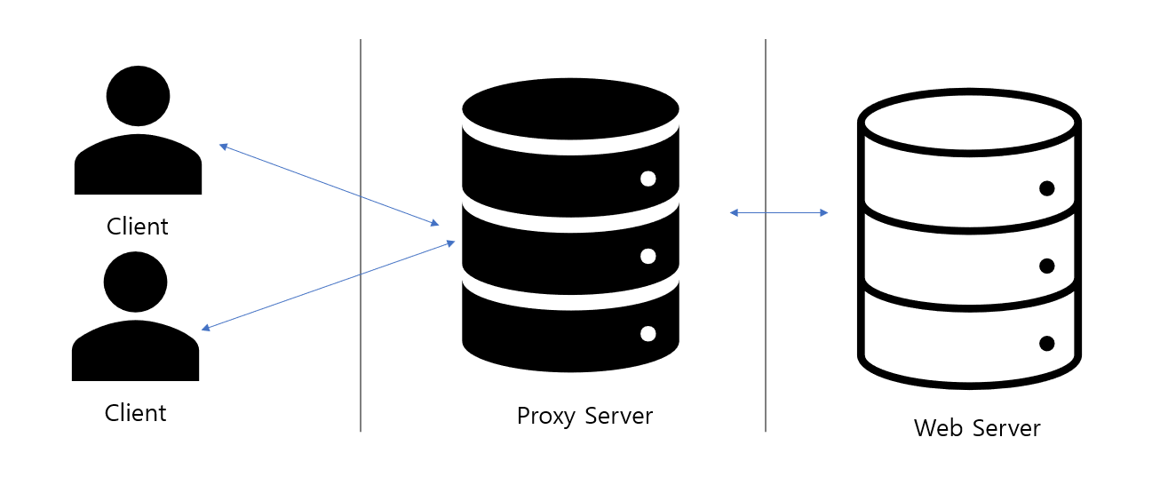 프록시는 클라이언트와 서버 사이에 위치하여, 요청과 응답 과정에서 데이터를 중계하는 역할을 담당합니다.