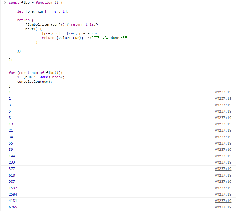 for (const num of fibo()){