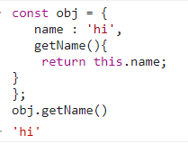 이는 객체 리터럴이 obj변수에 할당되기 직전 평가되며, 이에 따라 getName()이 호출되는 시점에는 해당 객체의 리터럴 평가 완료 후 객체가 생성된 후이기 때문에 메서드 내부에서 obj 식별자를 참조할 수 있다.