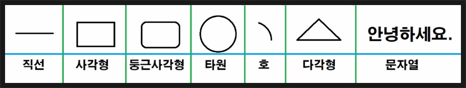 직선, 사각형, 둥근사각형, 타원 ,호 ,다각형 ,문자열