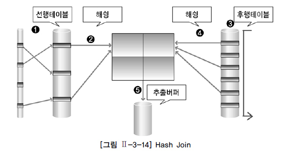 선행 테이블의 조인키를 기준으로 해쉬 함수를 적용하여 해쉬 테이블을 생성한다.