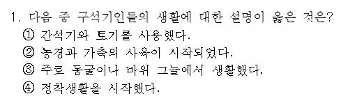 3번 반달돌칼은 구석기시대가 아닌 청동기시대의 유물이다.