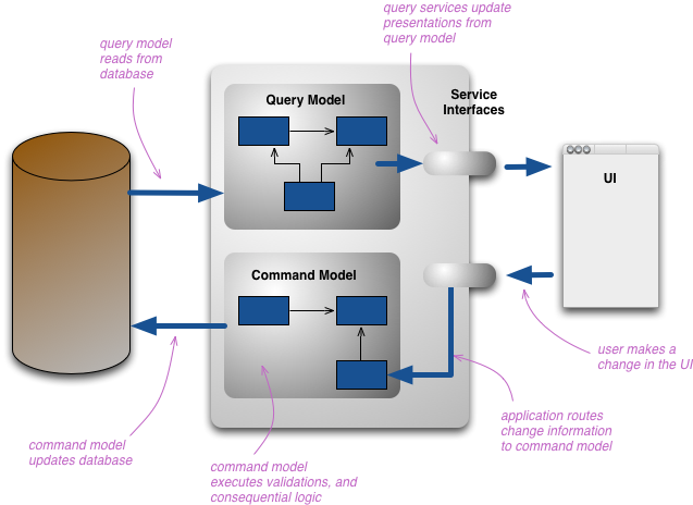 CQRS가 소개하려는 변화는 conceptual model을 update model과 display model로 분리하려는 것으로 Command와 Query라는 용어를 사용합니다.