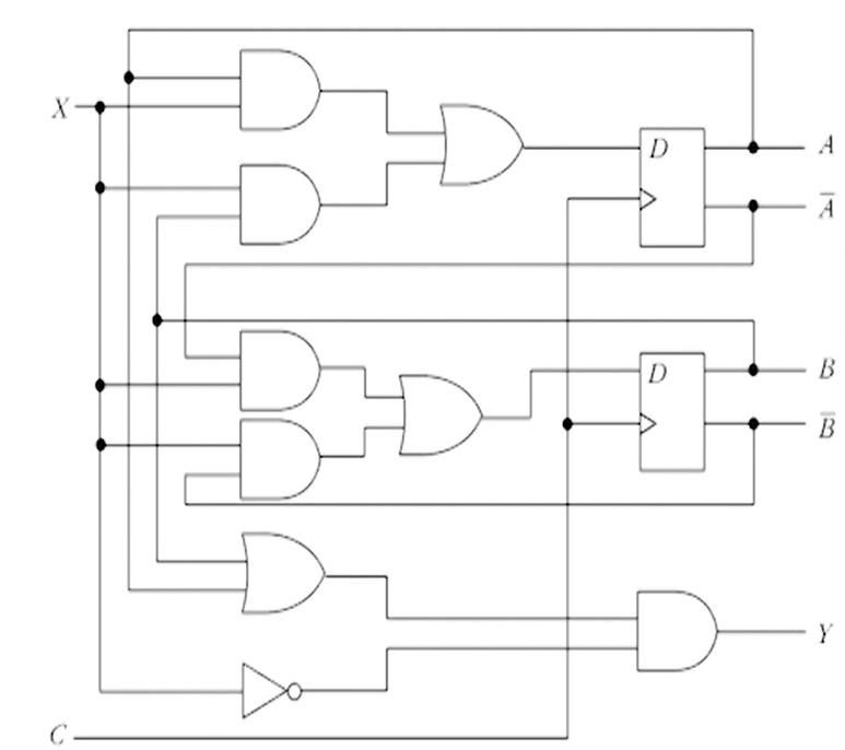 두 번째 D 플립플롭은 $ \overline{A}$X + $\overline{B}$X 이다.