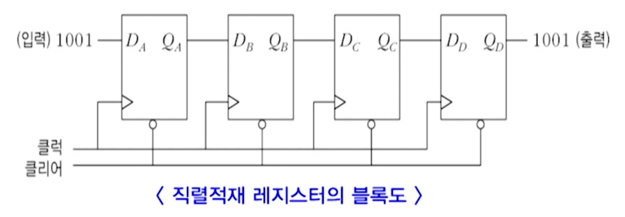 데이터를 일시 저장하거나 전송하는 장치이다. 플립플롭을 여러 개를 연결되어 있는 장치라고 할 수 있다.