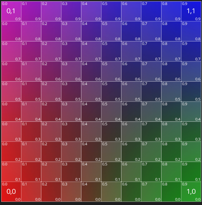 좌측 하단이 0.0으로 시작하여 우측 하단이 1.1로 마무리되는 좌표평면이다.