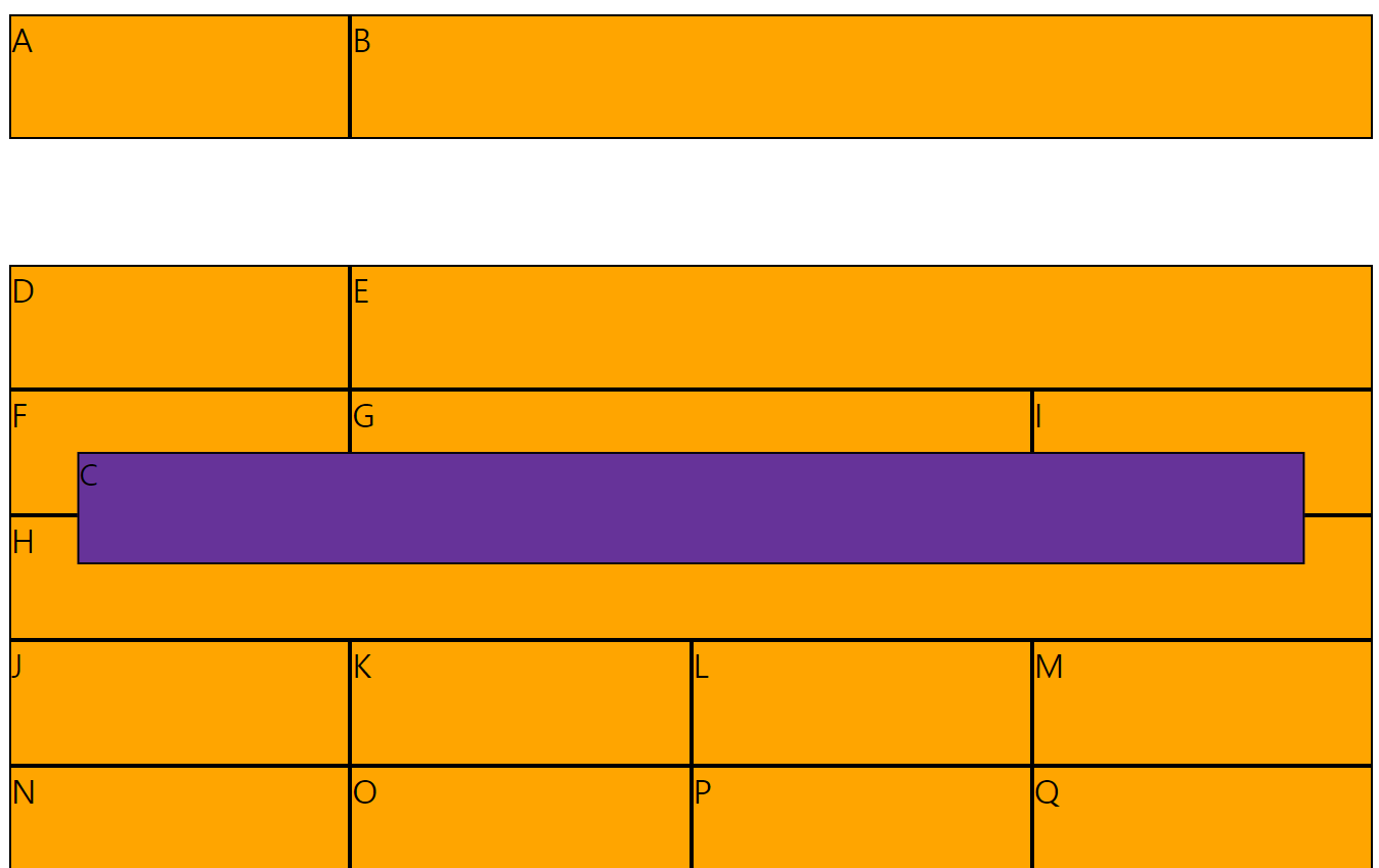 위 그림에서 A라는 구조는 2개의 영역을 가지고 있고 이는 1~3까지의 행 라인을 시작과 끝선으로 가지고 있습니다.
