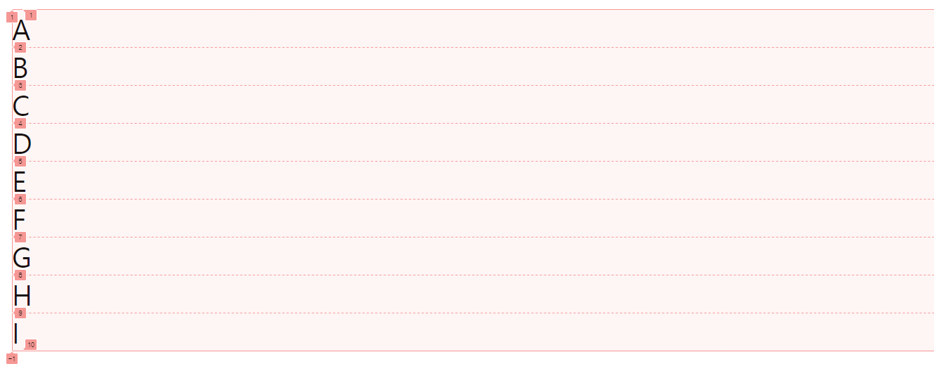 즉 명시적으로 grid-template 속성을 사용하지 않으면 미리 설정한 값이 없어 grid-auto 속성의 값을 따르겠군요.
