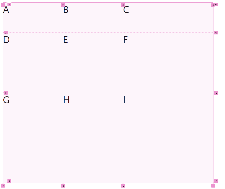 각 셀의 영역을 지정하는 방법이 grid 번호로도 가능합니다.