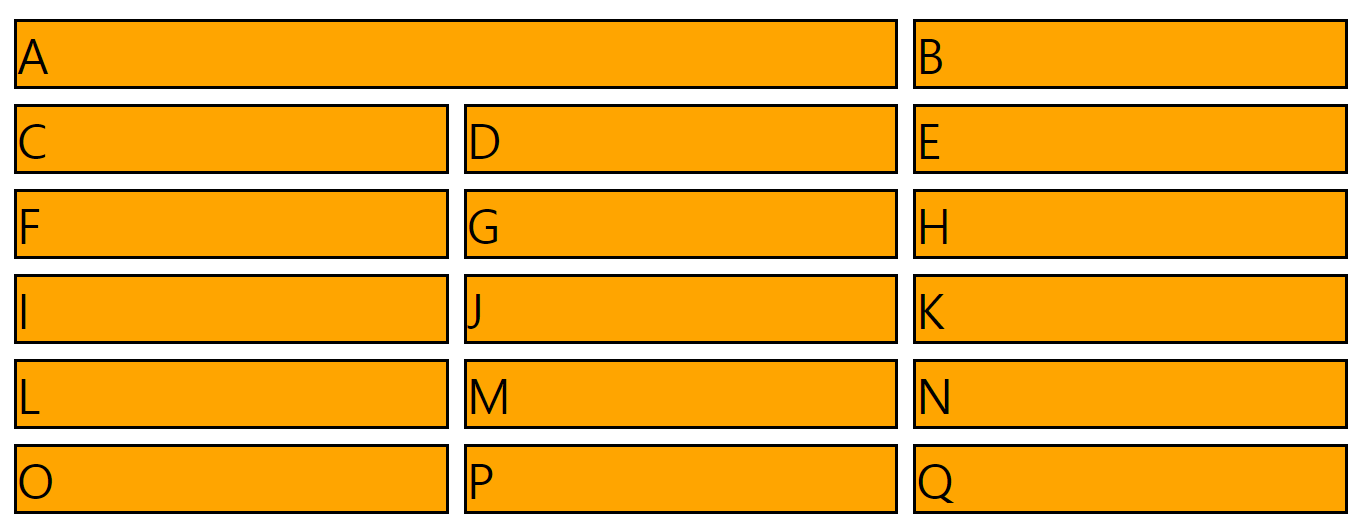각각의 grid-column을 조정해 영역을 지정해 주었는데요 다른 아이템들이 이를 어떻게 채워야 하는지에 대한 속성이 grid-auto-flow입니다.