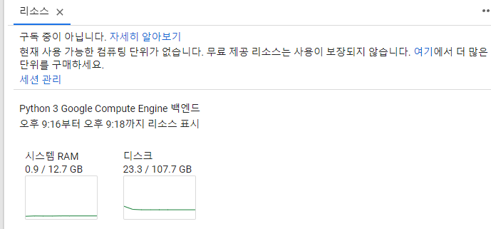 고성능 컴퓨터가 필요하면 구독을 통해 리소스를 사용하면 될 듯하다. 다만 간단한 공부 목적으로는 별도의 구독을 하지 않아도 되는 것 같다.