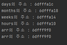 printf(" days의 주소 : %x\n", &days);