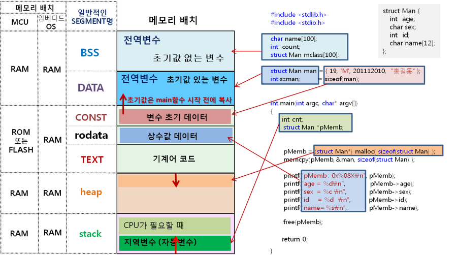 실제로 메모리가 할당될 때는 구조체 멤버 중 가장 큰 자료형의 크기로 할당이 됩니다.