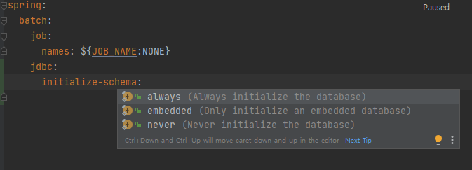 내장 디비를 사용하는 경우 embedded, 항상 실행하거나, 실행하지 않는 never 조건이 있습니다.