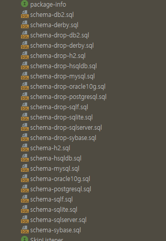 DDL 스크립트는 spring batch가 제공해 줍니다. 이는 org.springframework.batch.core에 존재하며 이를 통해 mysql 데이터베이스에 테이블을 생성해 보겠습니다.