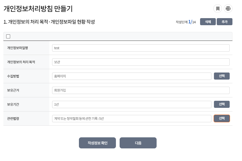 이 단계에서 모르는 부분이 있다면 그때 찾아서 만들어도 되겠다. 만약 교육이 필요하다면 개인정보 포털에서 무료 교육을