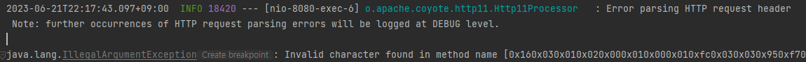 이 오류는 https로 redirect_uri로 구글에서 설정해서 발생한 문제로 https가 아닌데 http로 요청해서 header를 파싱 하지 못한 것 같습니다. 다시 http로 변경해 주고 시도하니 정상처리 되었습니다.